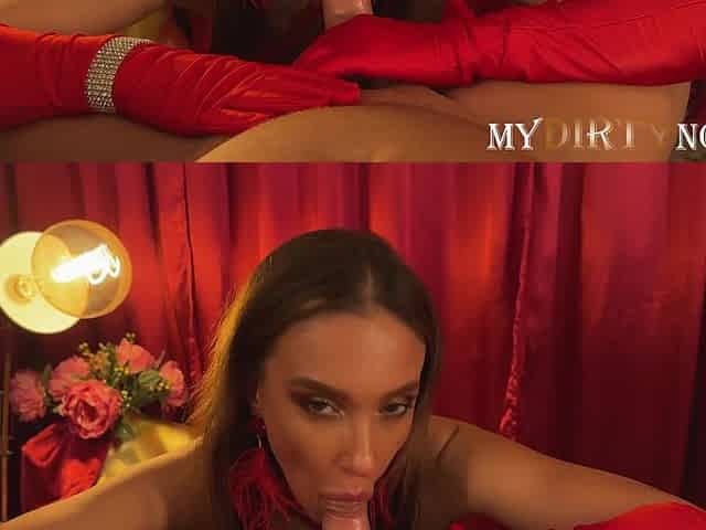 Playing with wife and sex doll in the red room