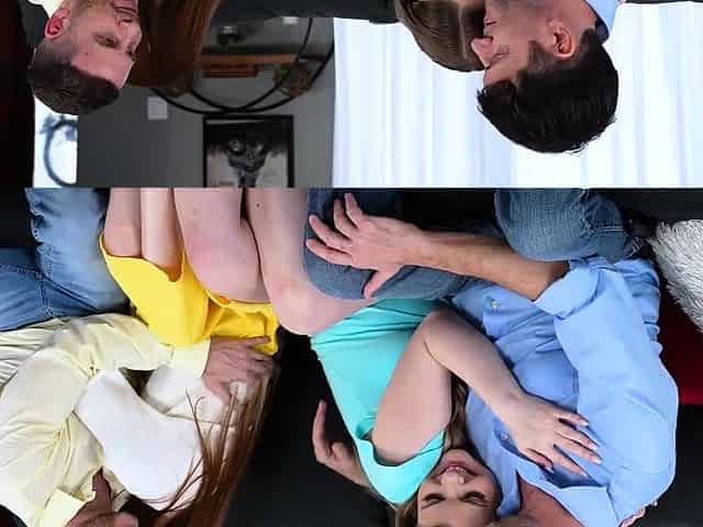 Stepdads cocks are both pressed up their stepdaughters asses