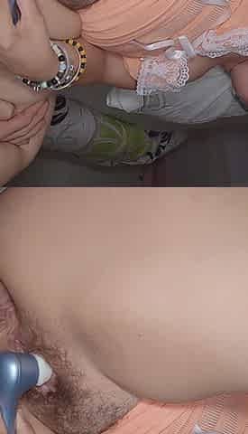 Asian girl with hairy pussy uses her vibrator