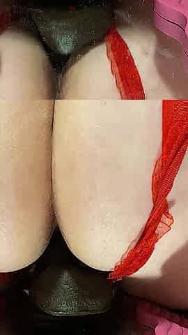 Wife rides bbc sex-toy on a mirror.