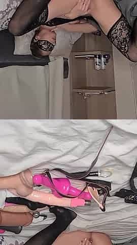 Very Horny Amateur Couple Fucking, Beautiful Bitch Enjoying Double Penetration and Fucking Machine.