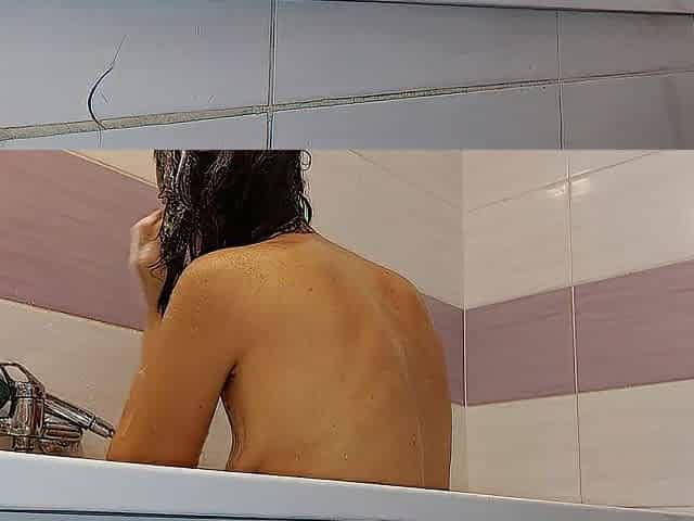 Une brune hawt et chaude prend un bain moussant. Femme amateur chatte poilue, gros seins, gros téton