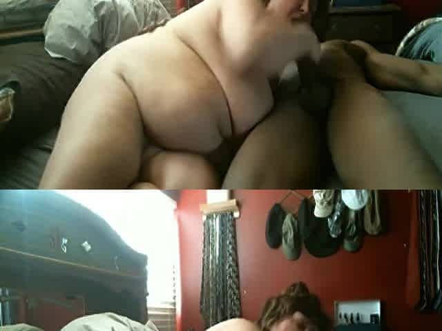 Watching his big tits BBW wife taking a BBC while he jerks