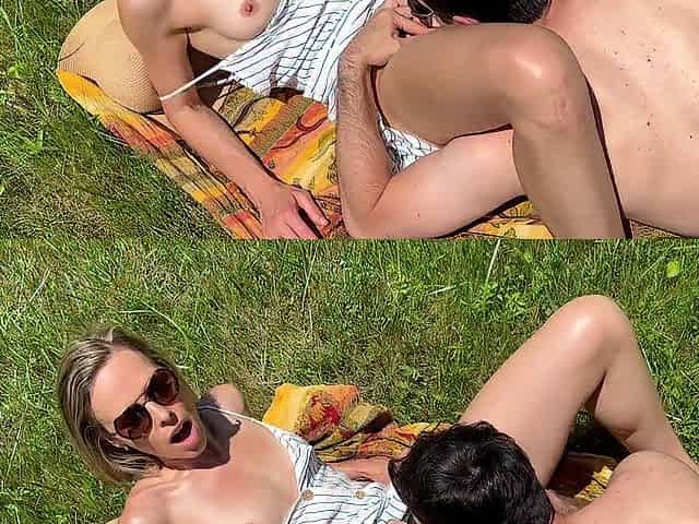 OutdoorThreesome For Trashy Golden-haired Housewife