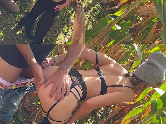 Libertine anglaise en trio dans le champ de maiis