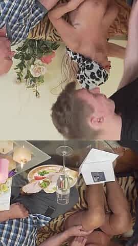 Wife Takes Turns Riding 2 Lads Side-by-Side Until They The one and the other Finish in Her / Sloppy Seconds