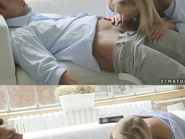 Wonderful girl Teena Dolly is undressing her boyfriend and pleasing him with deep blowjob and enjoying riding his huge dick.
