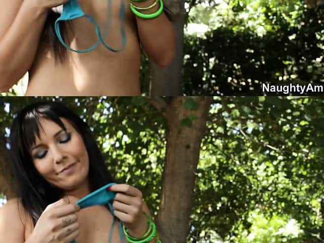Raquel Joanne displays her perky boobs and her wonderful ass outside