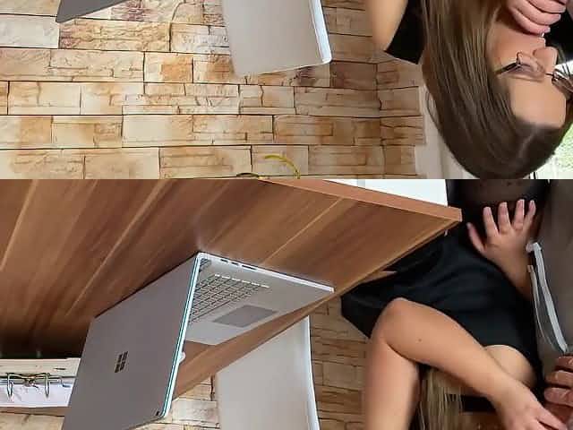 Wonderful blonde teeny works her mouth and her pussy on a long shaft