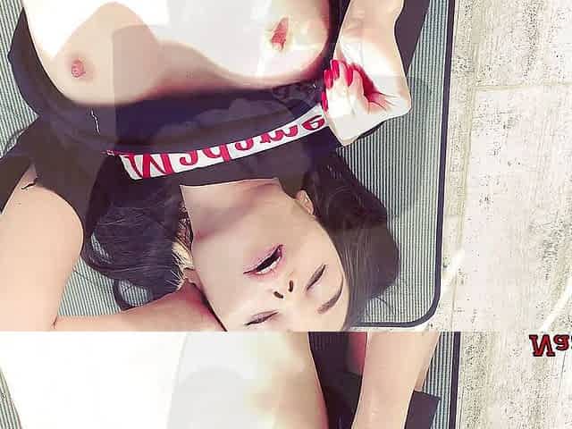 Busty babe gets horny after workout and she masturbates