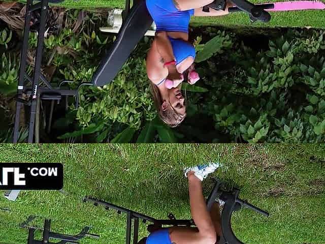 Enjoyable golden-haired honey is doing her workout routine and screwing a dude this babe loves a lot