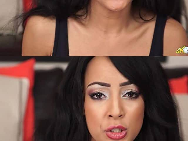 Amara Romani getting a hard workout from personal trainer Tommy Gunn, who feeds her a fresh protein shake