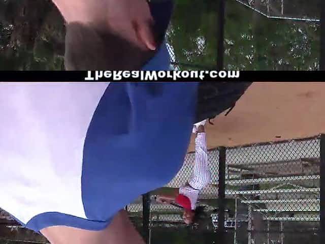 Tiny titted teen is often doing her workout routine in public places and getting totally bare