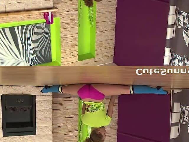 Bare legal age teenager gymnast shows erotic workout