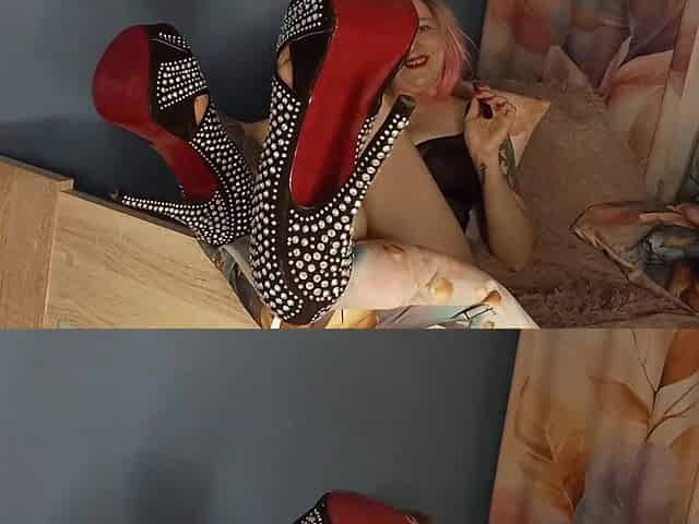 Lady Angela Makes You Kneel and Worship Her Red Bottom High Heels While She Is Relaxing with Her Vape