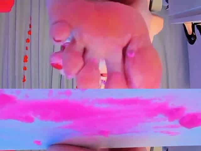 Sweet Barefoot Footjob with Red Polish Toenails with Hot Cumshot
