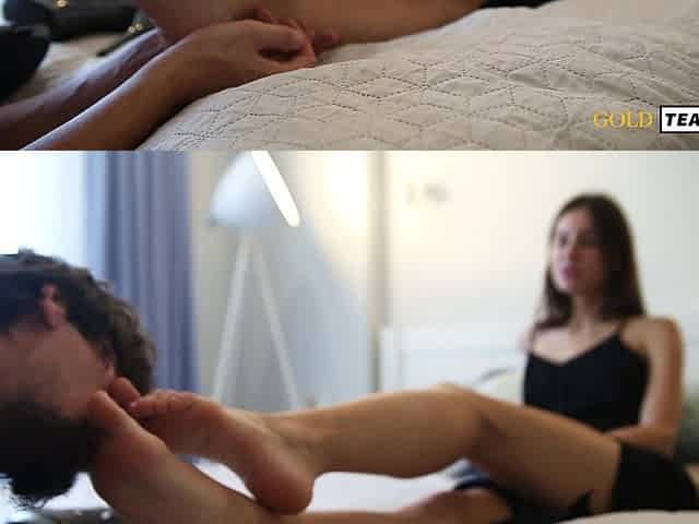 Please don't walk away from this femdom foot worship scene