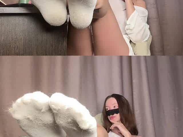 Blonde teen Scarlettandc worships feet and gets all beaned up