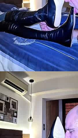 Mistress's Basic Training for Incompetent Masochist Is Slapping, Licking Bottoms of Boots, Deodorizing and Licking Sweaty Feet