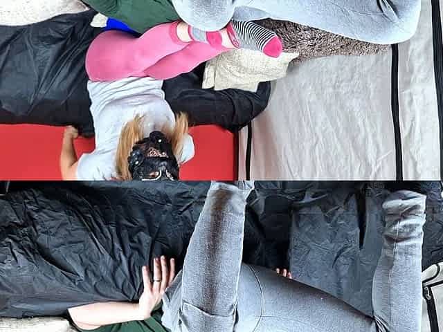 German femdom Femdomjozi loves to smother and ballbust with her small amateur feet in leggings and socks