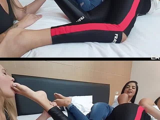 Foot Fetish Extreme! My Slave Loves to Lick My Feet, Today She Can Also Lick My Girlfriend's Feet!