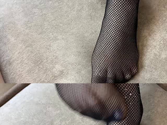 Girl in Black Fishnet Tights Seduces Guy and Lets Him Cum on Her Feet