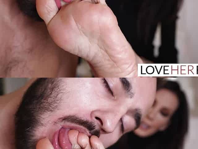 Mistress Tory Lane dominates her lounge with foot worship and pussy-smothering