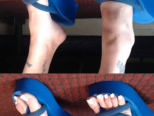 Long White Toenails Wedge Blue Flipflops