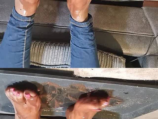 Slutty babe Ardentina plays with her sexy feet and pussy until squirt right on the floor