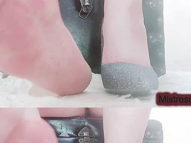 Humiliatrix, spy camera, fishnet feet worship