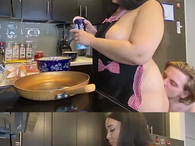 BBW beauty enjoys getting her ass licked by a horny guy in the kitchen