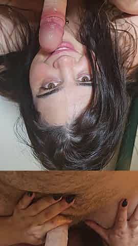 Nubile brunette gives sloppy deepthroat blowjob with a cum facial
