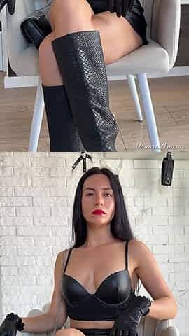 Leather Goddess, Slave Training, Humiliation, Feet in Nylon Socks Worship 4K
