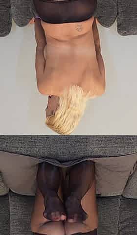 Lace Stockings with Garter Belt, No Panties or Pantyless and Blouse on Me