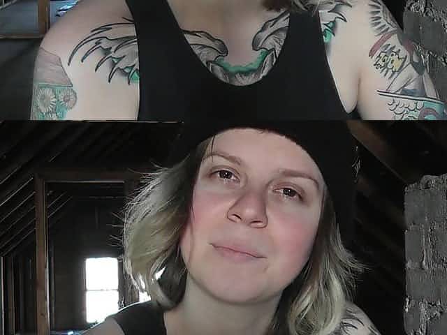 Tattooed and pierced lesbian babe with big tits wrestles with her girlfriend