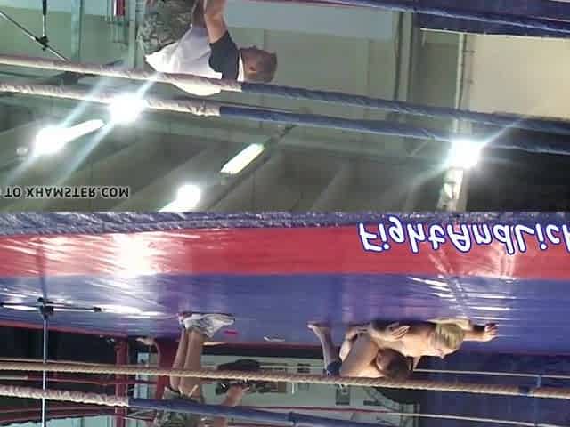 Lesbian babes wrestle in boxing ring
