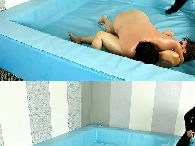 Leda and Lana S are here with the oiliest wrestling scene ever