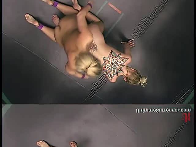 Blonde bitches wrestle naked in a ring