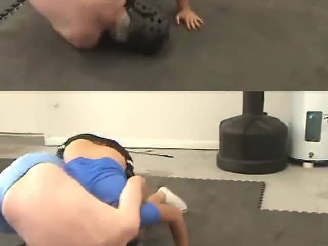 Mixed wrestling - Tall guy outmuscled by a short girl