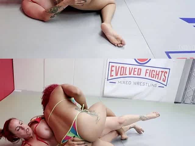 Lesbian redhead wrestler dominated by bigass Ebony rival