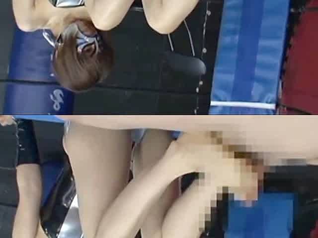 Asian lesbian wrestler fucked in pussy with strapon by big friend