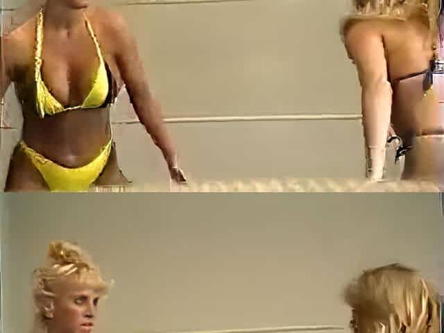 Retro interracial lesbian wrestling