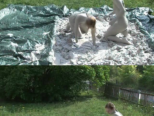 Naked mud wrestling