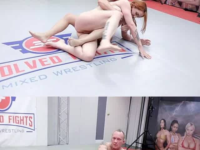 Intense mixed wrestling match with Nomi Melone showcasing her strength and skills!
