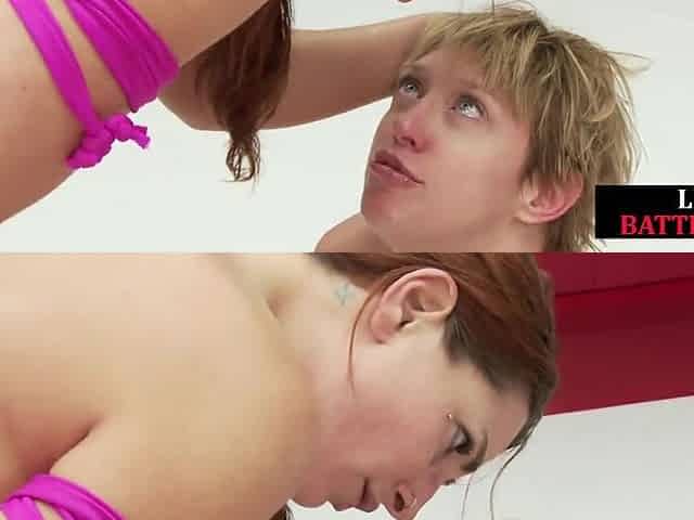Wrestling lez redhead fights busty MILF in wrestling arena