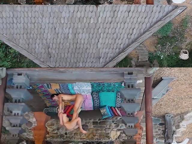 Luna does some yoga stretching topless and fucked by her BF